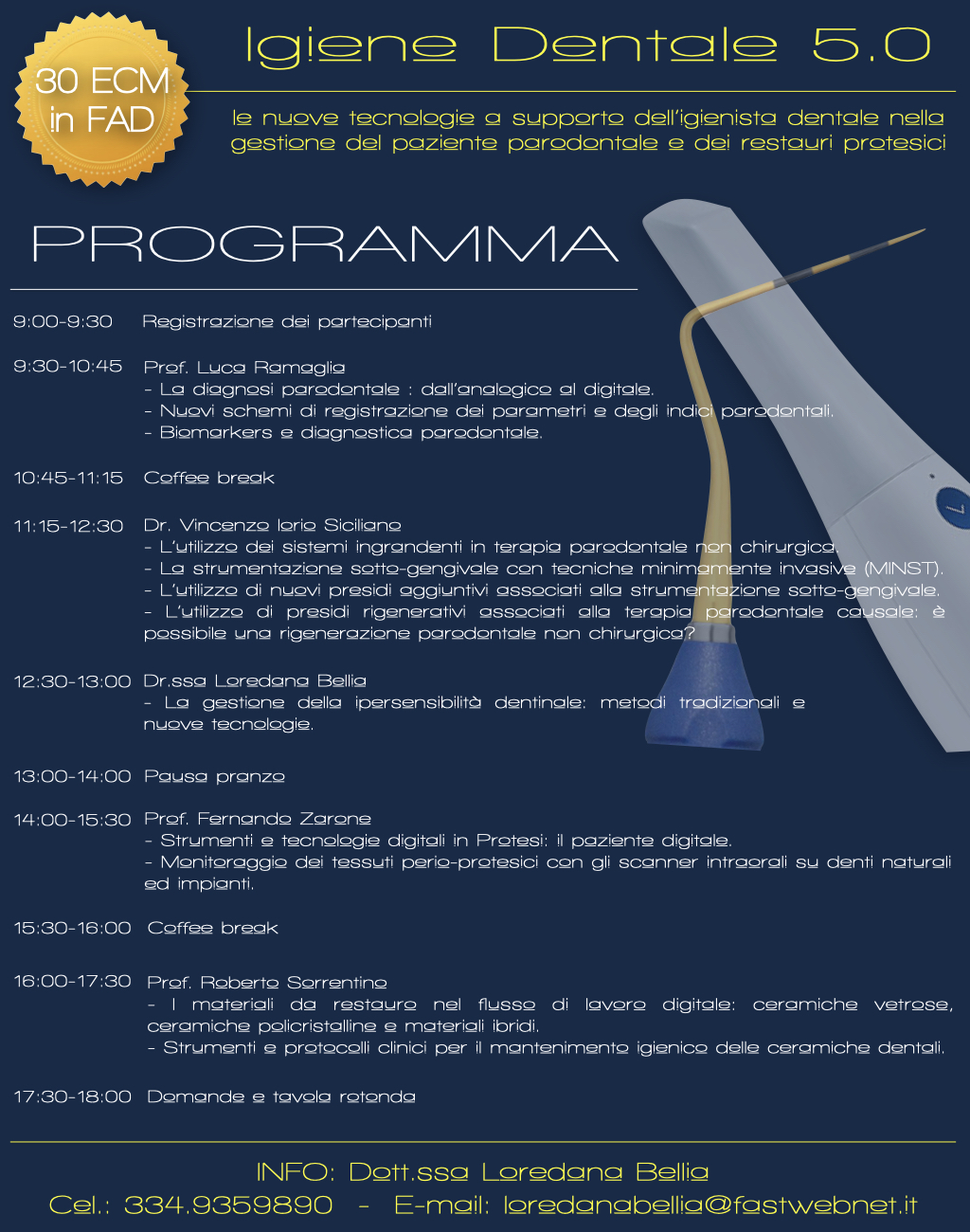 Igiene Dentale 5.0: le nuove tecnologie a supporto dell’igienista dentale nella gestione del paziente parodontale e dei restauri protesici.